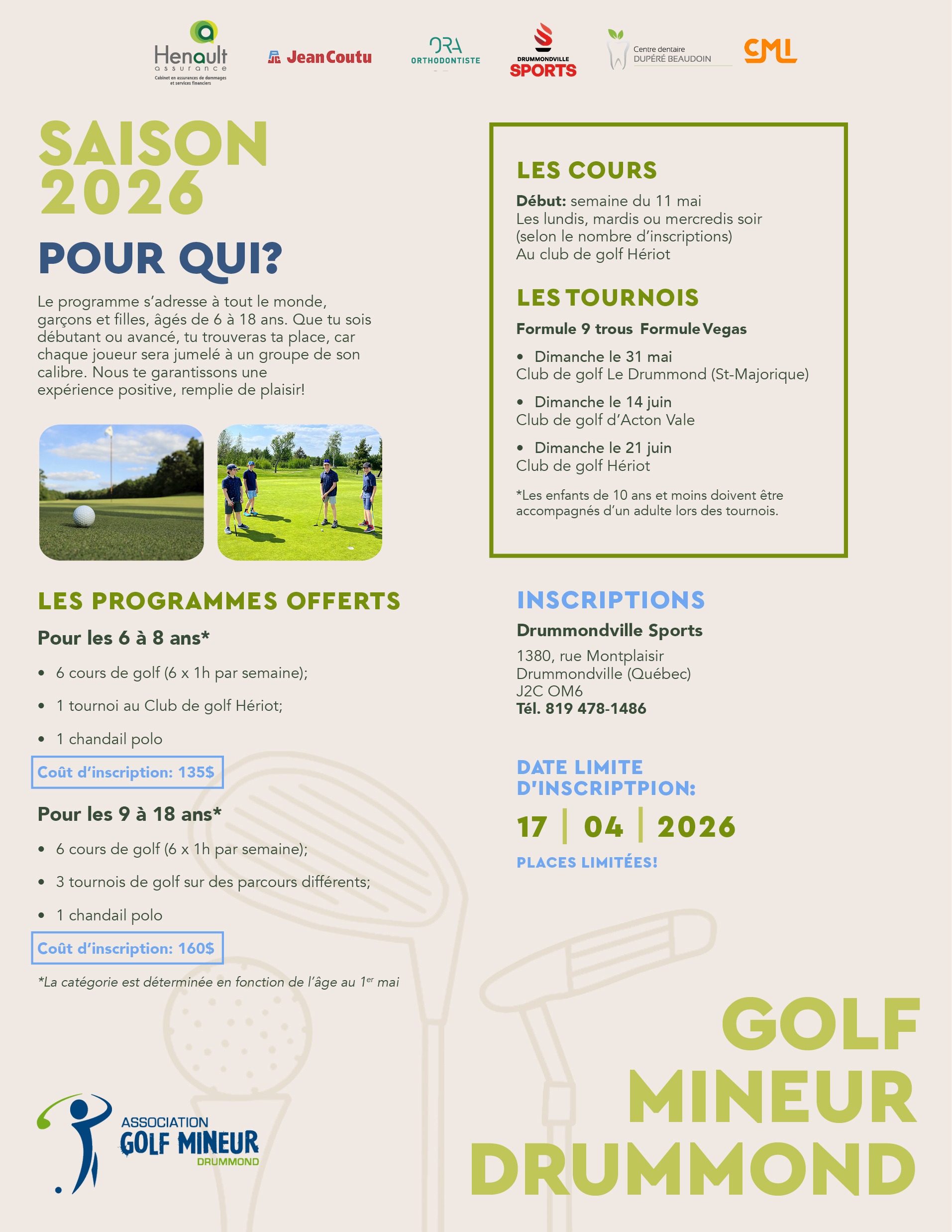 L’association de golf mineur te permettra d’apprendre les techniques de base du golf, de développer tes habiletés motrices et d’améliorer ton jeu en jouant sur de véritables terrains.